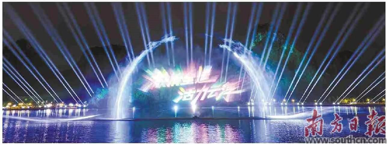 10月30日起,云浮市将在盘龙天湖广场举办为期三晚的景观光影展,用多彩光影照亮夜空,为十五运会营造热烈氛围。演出巧妙地将曲棍球元素融入到云浮的景观、文化、产业中。以“激情国赛,活力云浮”为篇章主题,明确界定了“冰球之都”新的城市形象和风格,激发了市民对体育赛事的参与感和自豪感。南方日报记者 王家豪 陈伟琪 摄